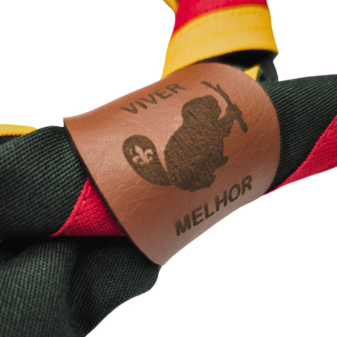 Arganel de couro sintético, fechado com arrebite de ouro envelhecido, estrutura gráfica em corte a laser.