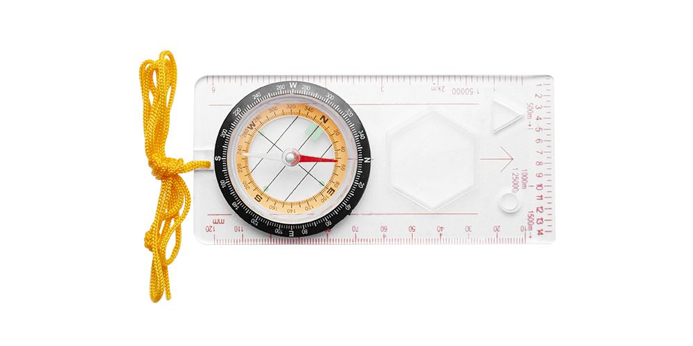 Feita em acrílico resistente e escalas essenciais para sua leitura de mapas, este modelo possui régua, corda, lente de aumento, líquido estabilizador e indicadores dos pontos cardeais.