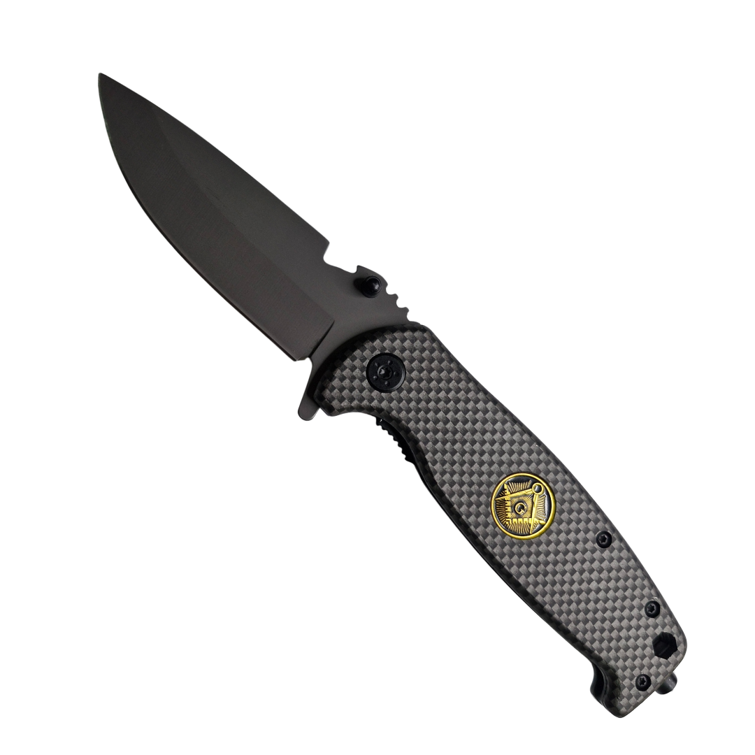 Esse canivete é construído com material de alta qualidade, proporcionando estética e usabilidade excelentes. Seu cabo imita fibra de carbono e carrega um símbolo de peso: O símbolo é diretamente ligado com a arquitetura, embora seja usado por comunidades como a maçonaria. O significado remete à parte espiritual do mundo, com o compasso e o esquadro representando a perpendicularidade do plano físico com o espiritual, e a letra "G" no centro, ao arquiteto do universo, "God" (Deus).